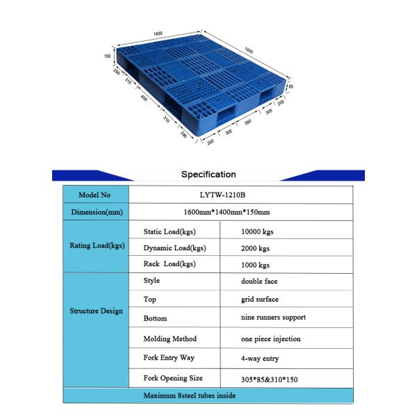 ⑧. Plastic pallet is resistant to acid, alkali, moisture or corrosion, clean and hygienic, no static electricity, easy to clean, recyclable etc.